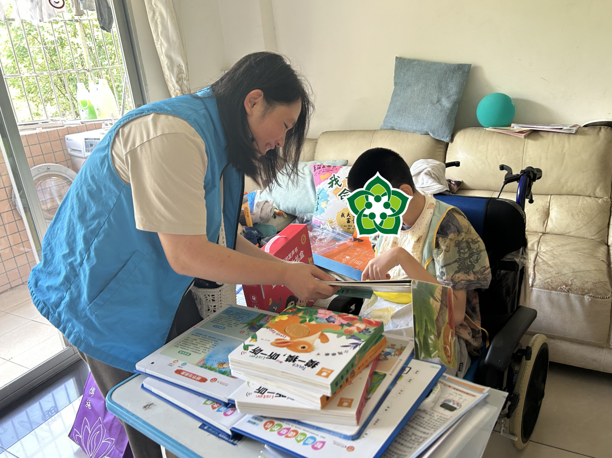 社工迅速响应,结合前期入户探访时掌握的小宁的学习需求,为其申请了学习触摸书、有声书等专注学习物资。当社工将物资送到小宁手中时,小宁立刻被色彩鲜艳的触摸书吸引,迫不及待地用指尖轻抚书页上的立体图案,眼神里满是好奇与欢喜。小宁母亲感动地说道:“孩子之前看书总坐不住,学东西也很慢,我们一直没找到合适的办法。这些东西既有趣又能帮他集中注意力,真是太实用了!衷心感谢社工的关爱。”此次物资帮扶,不仅为小宁提供了专业辅具支持,更减轻了家庭在孩子教育方面的压力,让困境儿童切实感受到社会温暖。