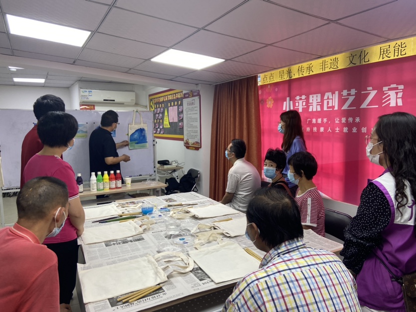 广爱“小苹果”社区融合与就业支持项目以社区内有就业能力和就业意愿的“小苹果”(以精神和智力康复者为主)为服务对象,就业、创业支持为主线,以促进“小苹果”的社会康复,即健全的社会功能为目的。社会功能的健全可以分为两个方面,一是职业能力的提升;二是社会适应性的提升,即自我效能感以及社会融入。项目以“小苹果创艺之家”为平台,搭建小苹果“梦想杂货铺”,创新“万人共创”慈善模式,致力于为残障人士打造一个充满创意和艺术魅力的社会康复平台。