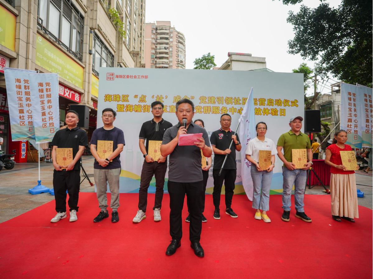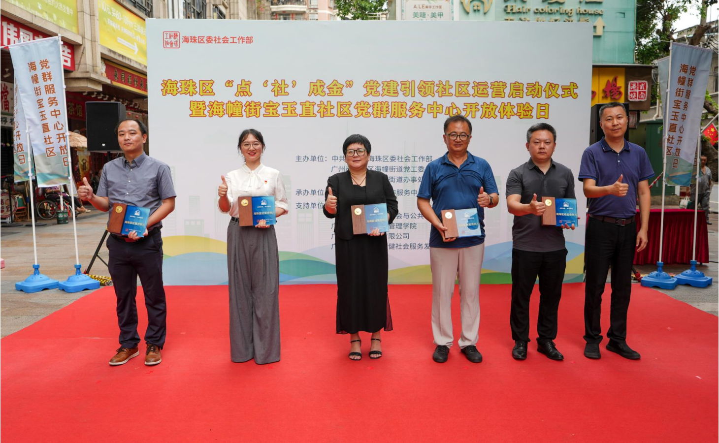 2025年9月28日,广州市海珠区“点‘社’成金”党建引领社区运营项目启动仪式暨海幢街宝玉直社区党群服务中心开放体验日活动,在海珠区海幢街举行。广州市委社会工作部、海珠区委社会工作部、海珠区民政局及各街道代表,与广爱社会工作服务中心等“社区合伙人”单位代表、社区居民共同见证海珠区党建引领社区运营与基层治理实践的新路径。
