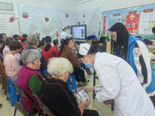 图为“安全行走、稳如泰山”防跌倒宣传为主题开展讲座活动