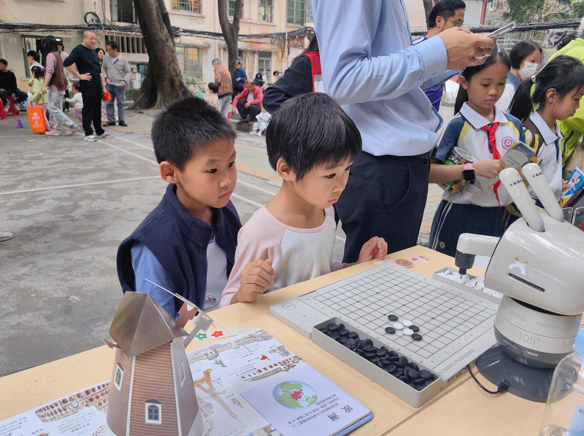AI下棋机器人吸引了棋坛老手和初学萌新驻足对弈。