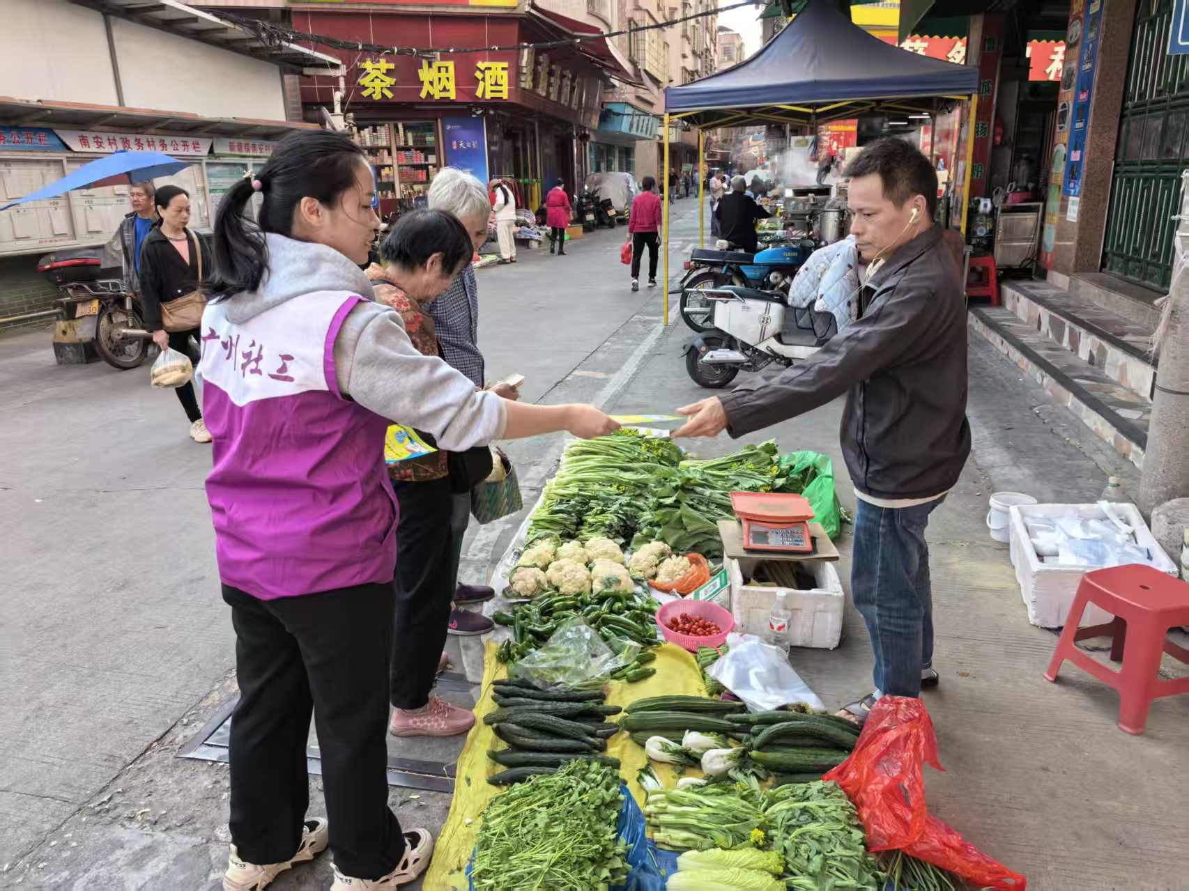 12月9日上午,新塘镇南安村村委门口热闹非凡,第二场禁毒宣传活动在此开展。针对老年人、青少年等易受侵害的重点群体,广爱禁毒社工联合新塘镇平安法治办公室(禁毒组)、村委工作人员,开启了“一对一精准答疑”模式。