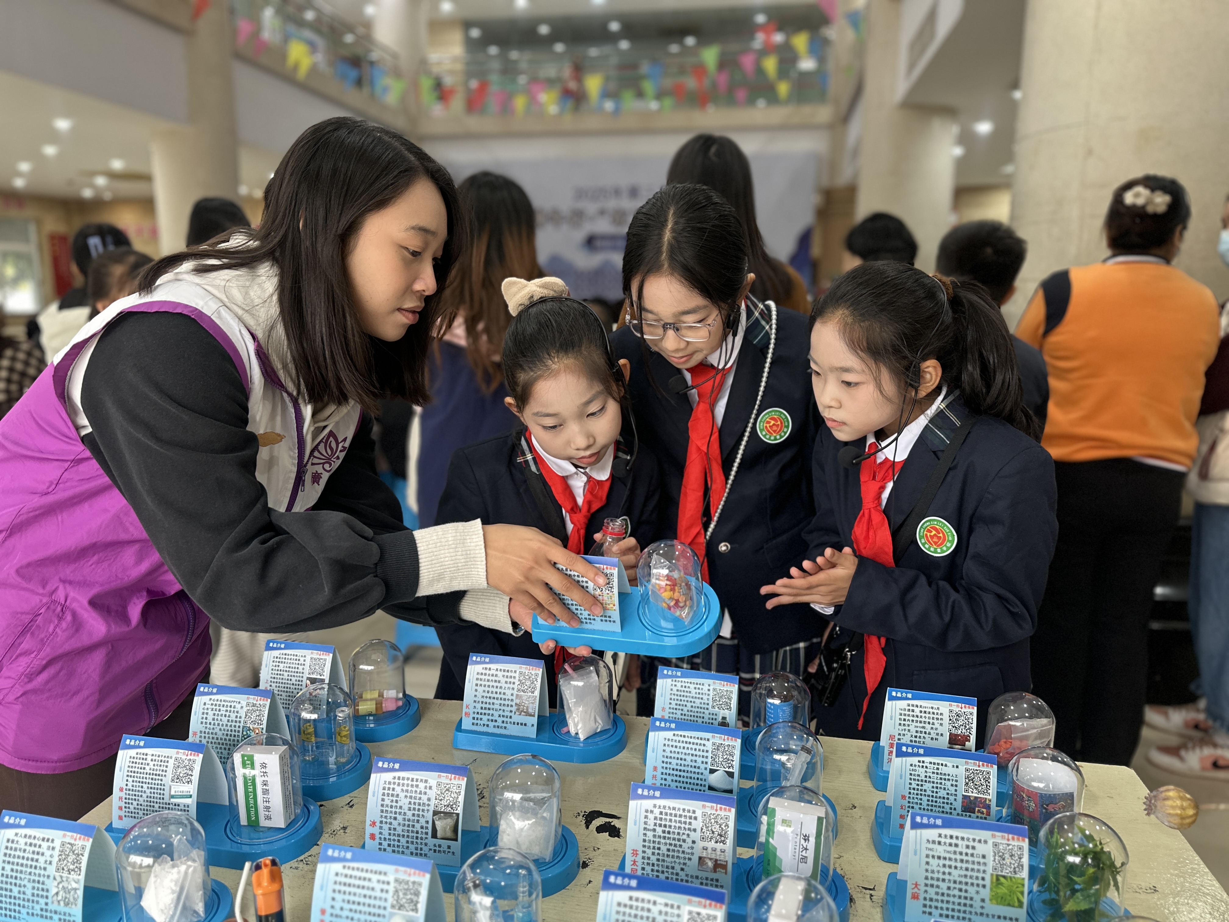 图为学生围观学习毒品知识