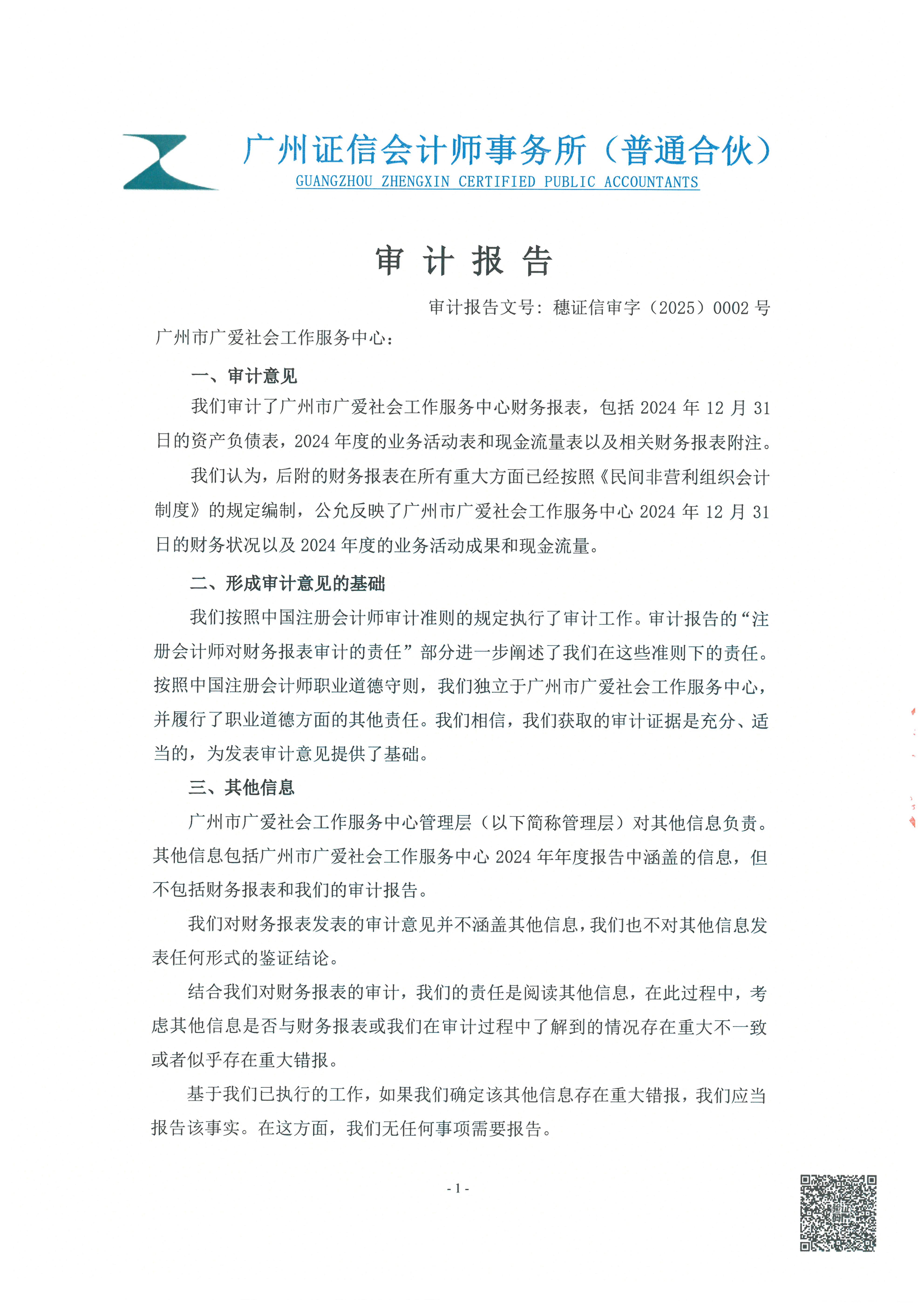 当前位置:首页 >> 信息公开 >> 广州广爱财务信息 >> 审计报告(2016-2024年)广州市广爱社会工作服务中心2024年度财务审计报告