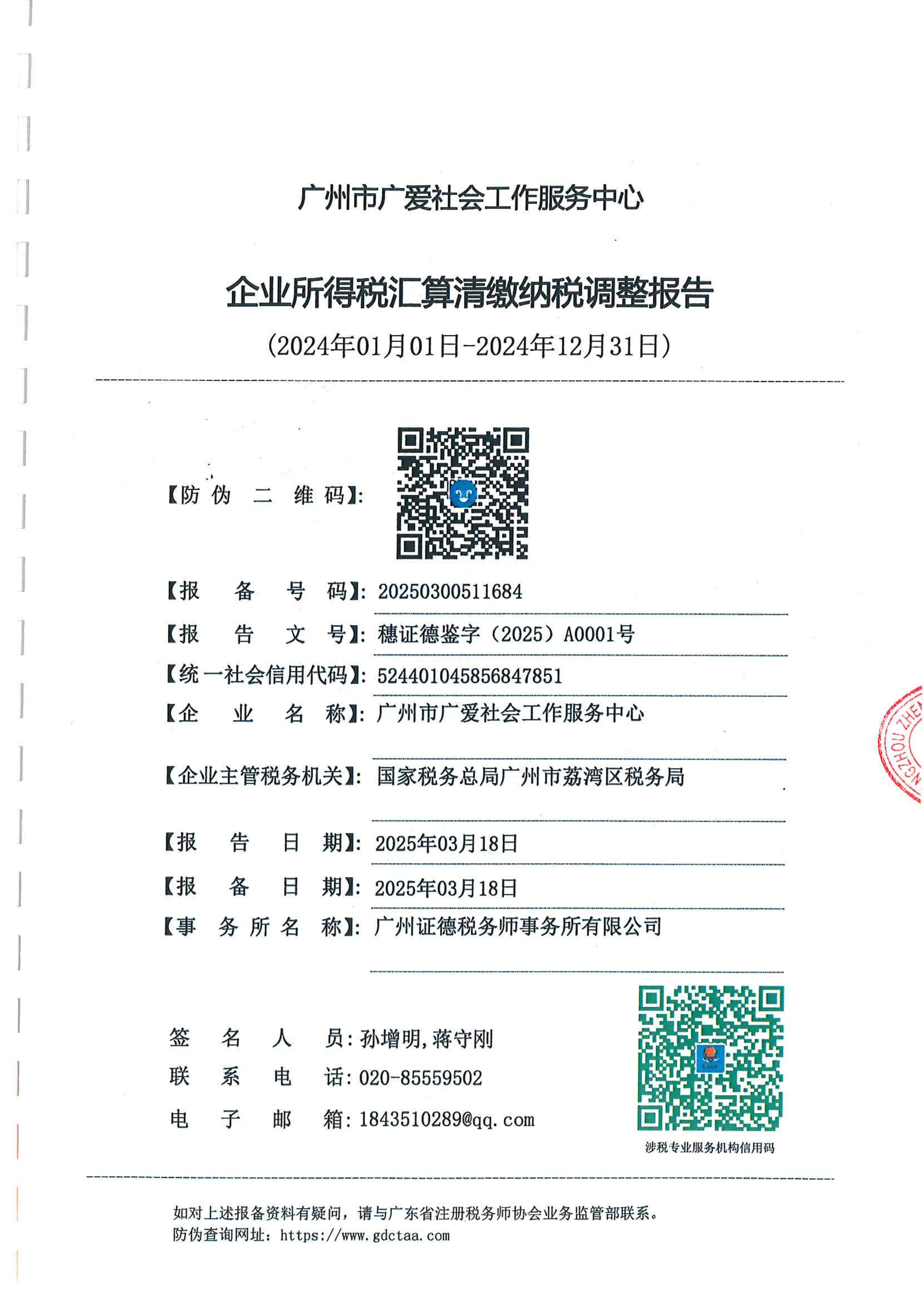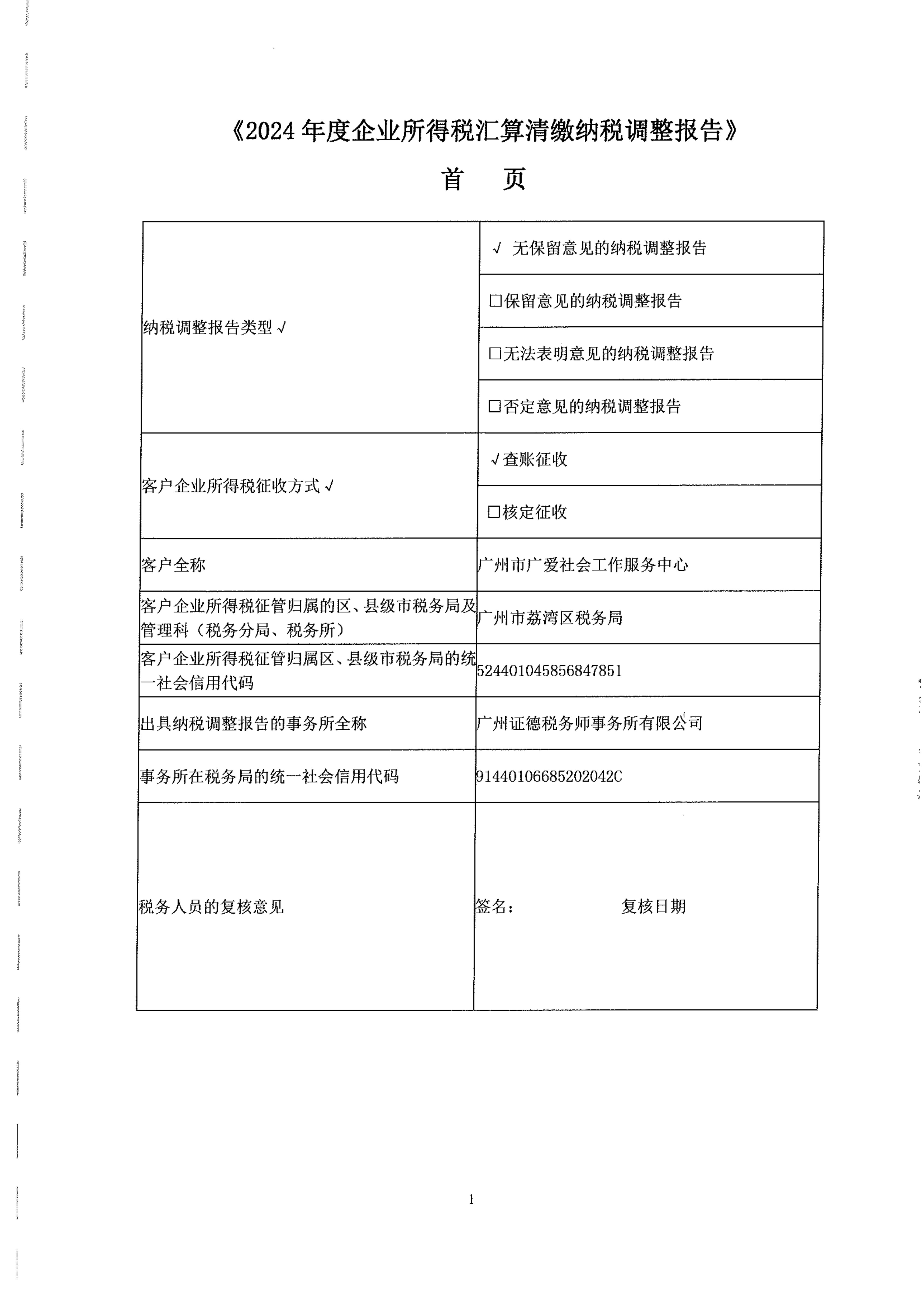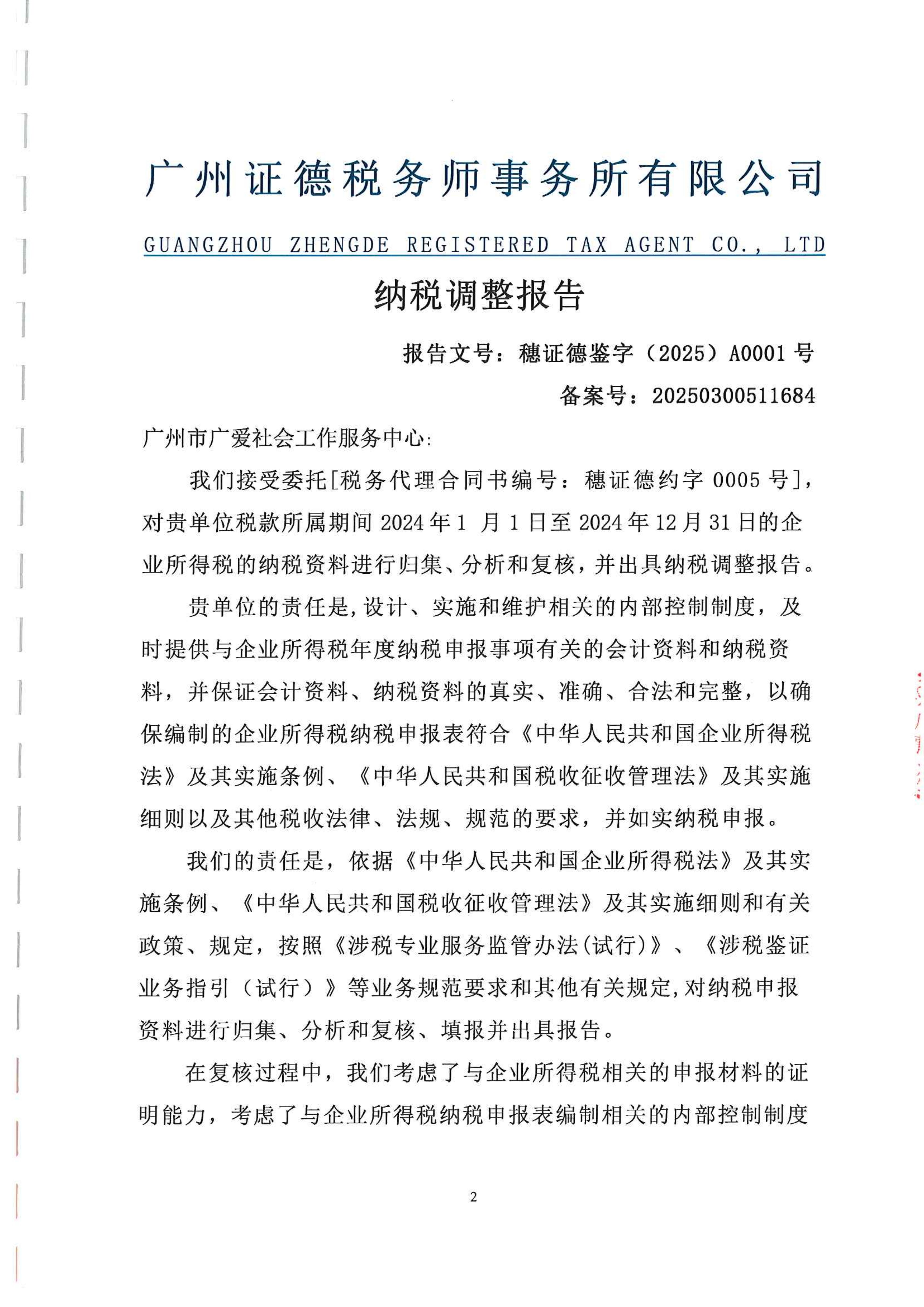 当前位置:首页 >> 信息公开 >> 广州广爱财务信息 >> 审计报告(2016-2024年)广州市广爱社会工作服务中心企业所得税汇算清缴纳税调整报告(2024年01月01日-2024年12月31日)