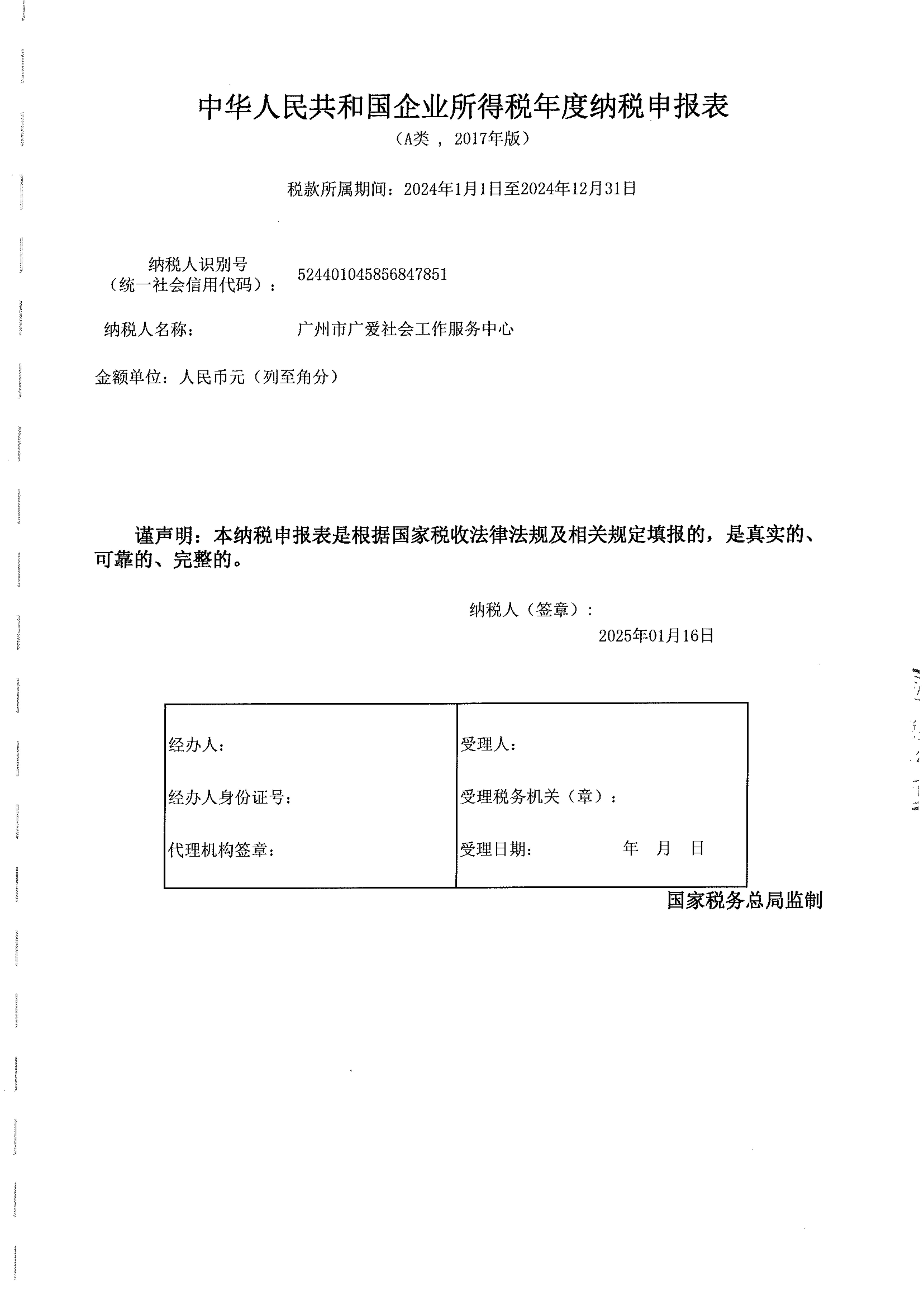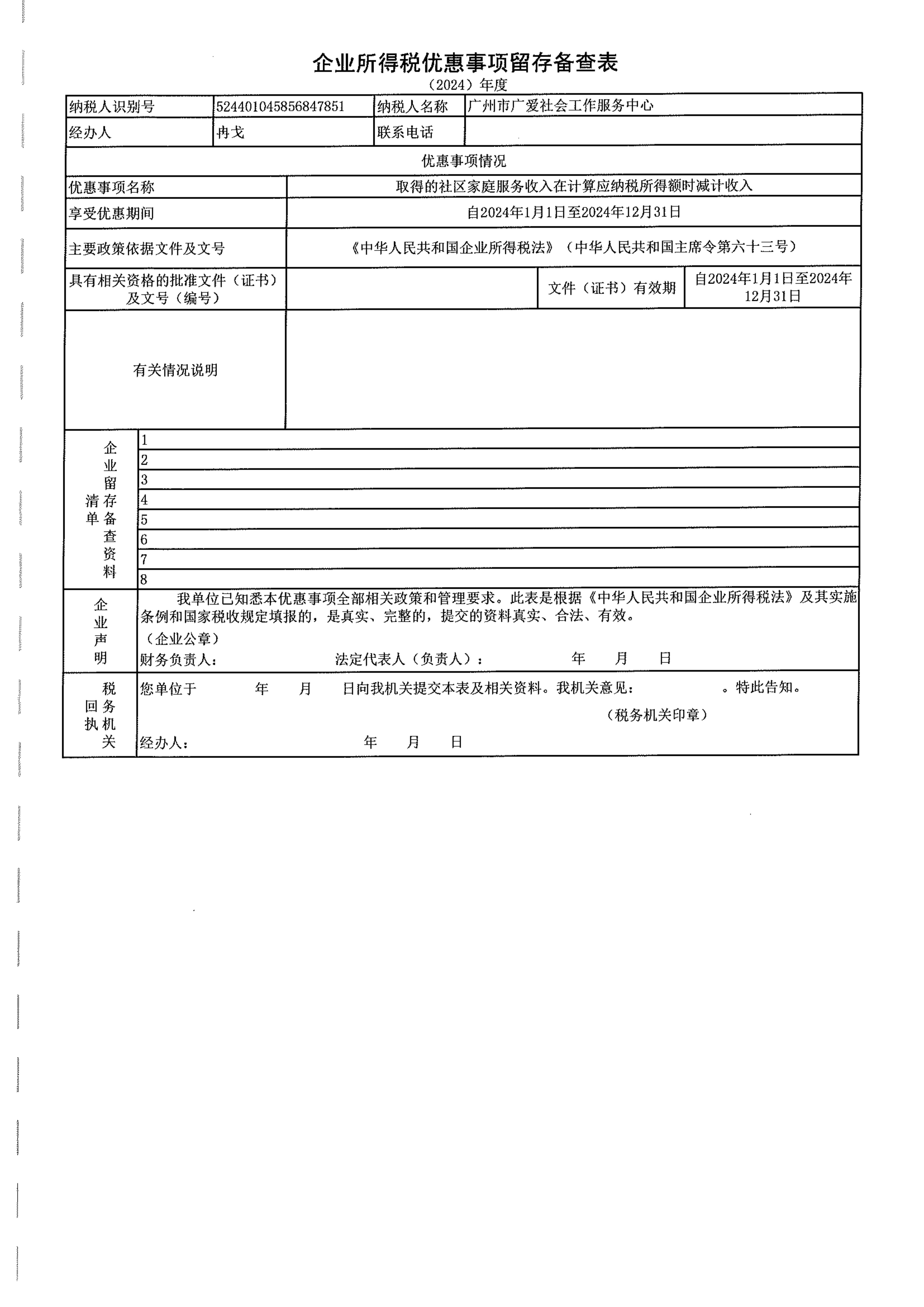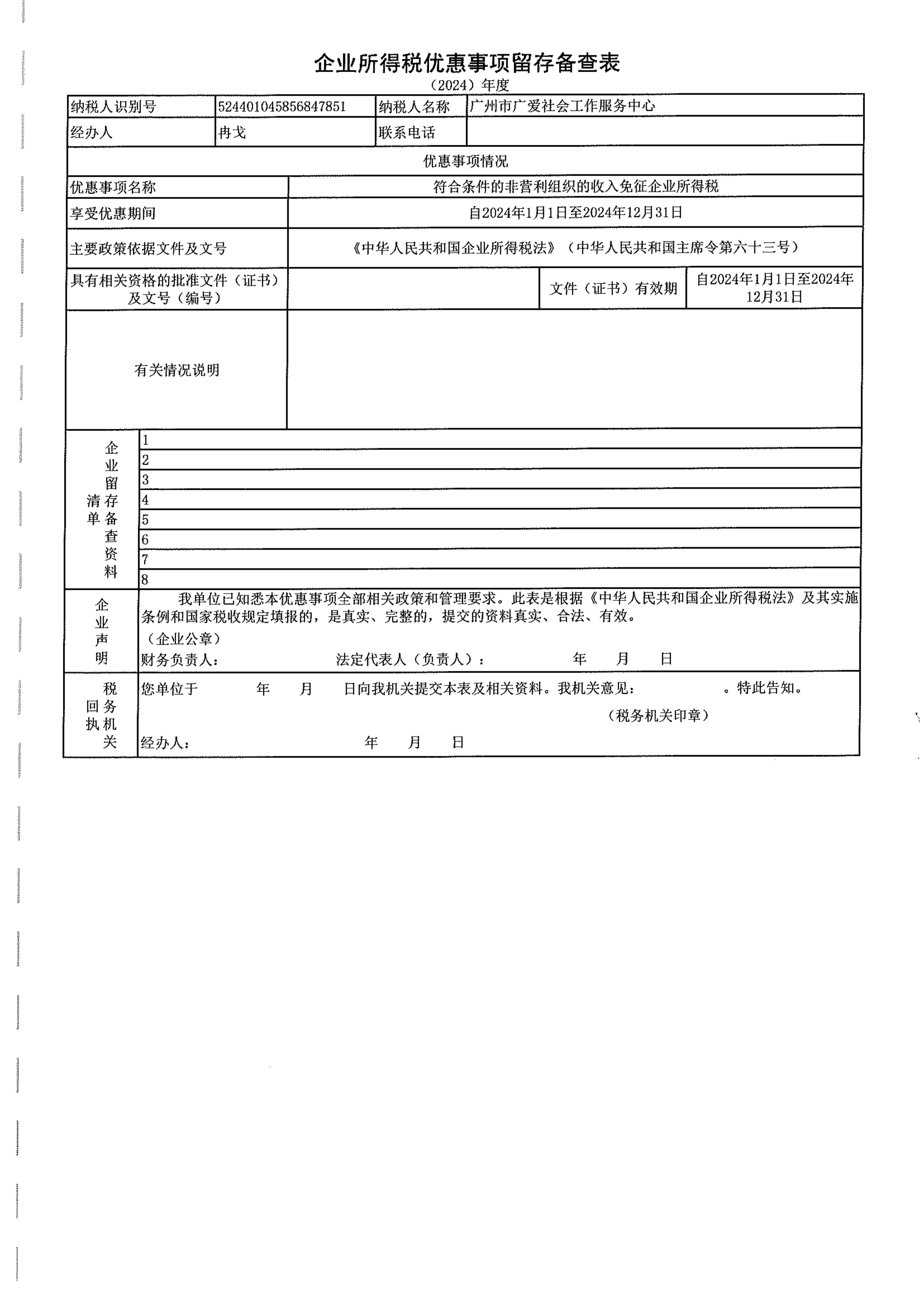 当前位置:首页 >> 信息公开 >> 广州广爱财务信息 >> 审计报告(2016-2024年)广州市广爱社会工作服务中心企业所得税汇算清缴纳税调整报告(2024年01月01日-2024年12月31日)