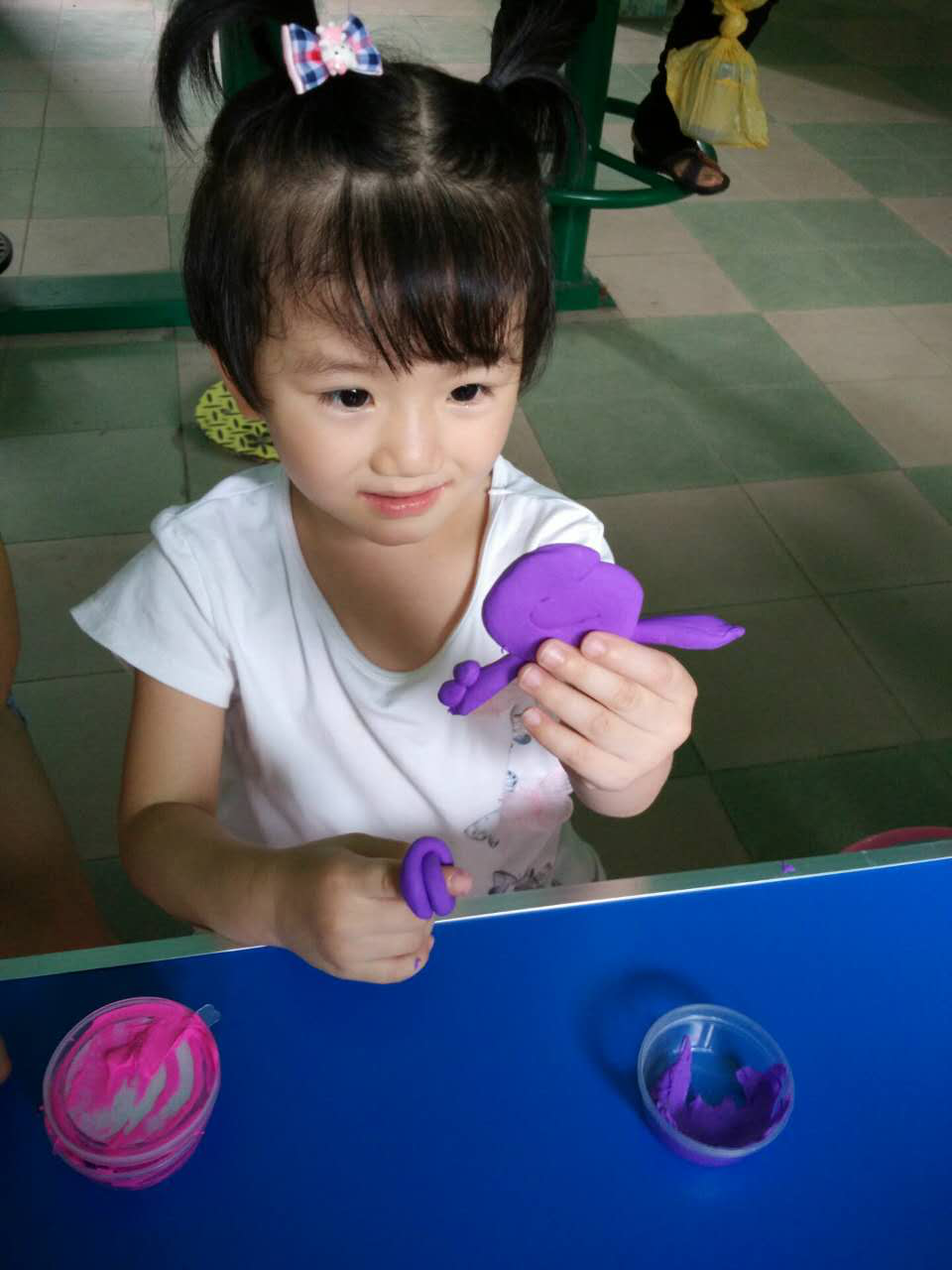 活动过程中,社工首先进行自我介绍,接着社工通过木头人游戏让组员介绍了自己,游戏过程中亲子间互动良好,组员积极性高。接着社工还向组员说明小组活动相关内容、小组的目的,及与组员家长签到了小组契约。同时社工通过玩黏土形式让家长与孩子一同完成制作,亲子间表现互动良好,小组进展顺利。