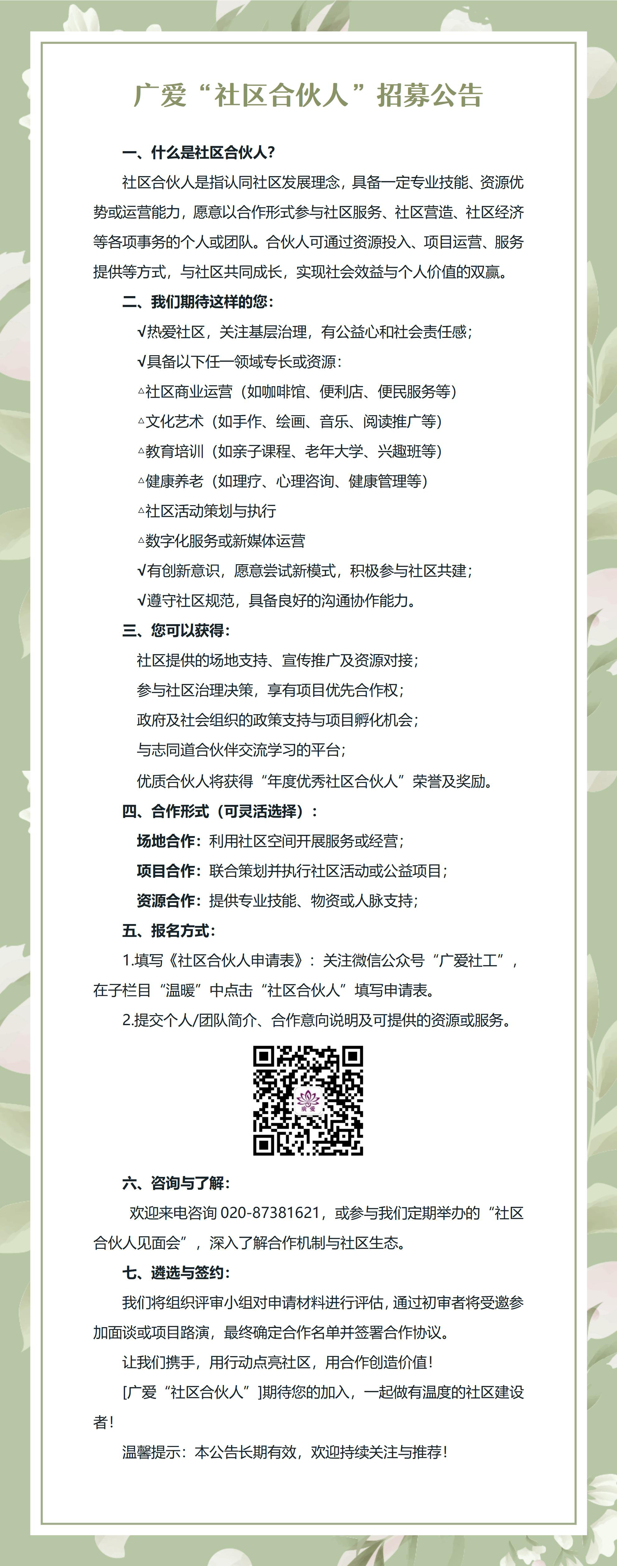 活动现场,广爱发布了《社区合伙人招募公告》,为促进资源共享,凝聚“1+1>2”的合力奠定更为坚实的基础。
