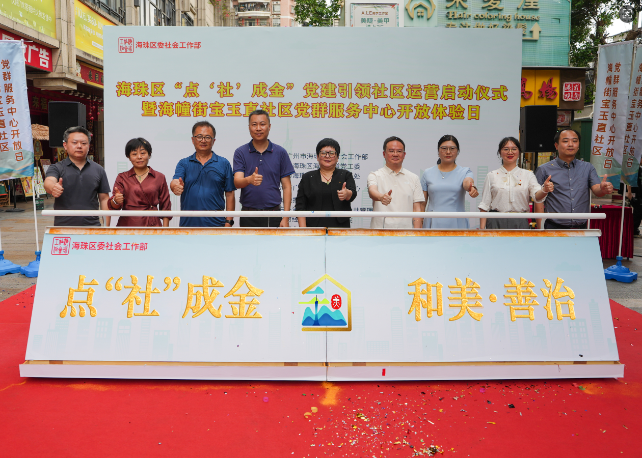 2025年9月28日,广州市海珠区“点‘社’成金”党建引领社区运营项目启动仪式暨海幢街宝玉直社区党群服务中心开放体验日活动,在海珠区海幢街举行。广州市委社会工作部、海珠区委社会工作部、海珠区民政局及各街道代表,与广爱社会工作服务中心等“社区合伙人”单位代表、社区居民共同见证海珠区党建引领社区运营与基层治理实践的新路径。