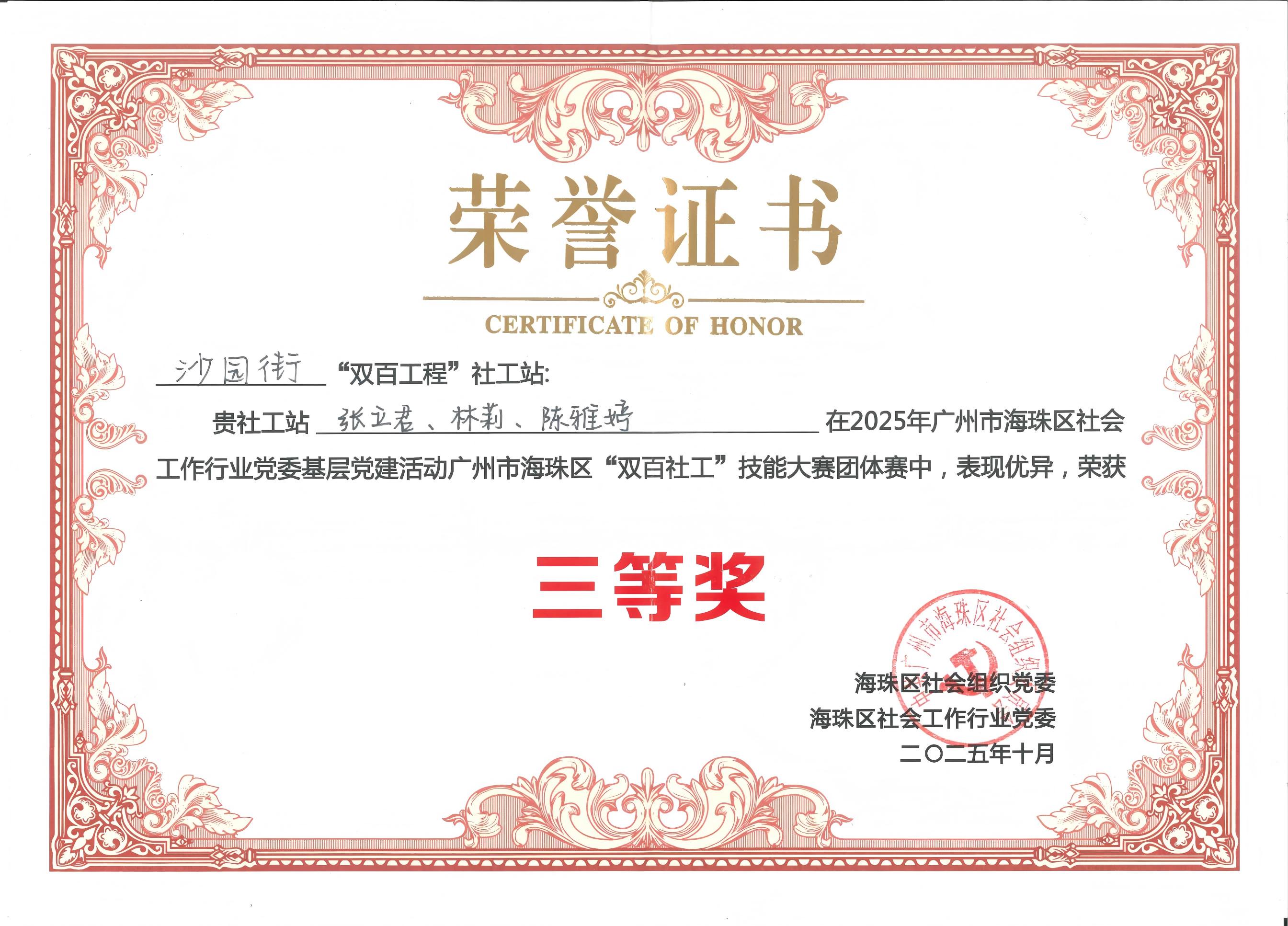 沙园街“双百工程”社工服务站参赛队伍荣获大赛三等奖