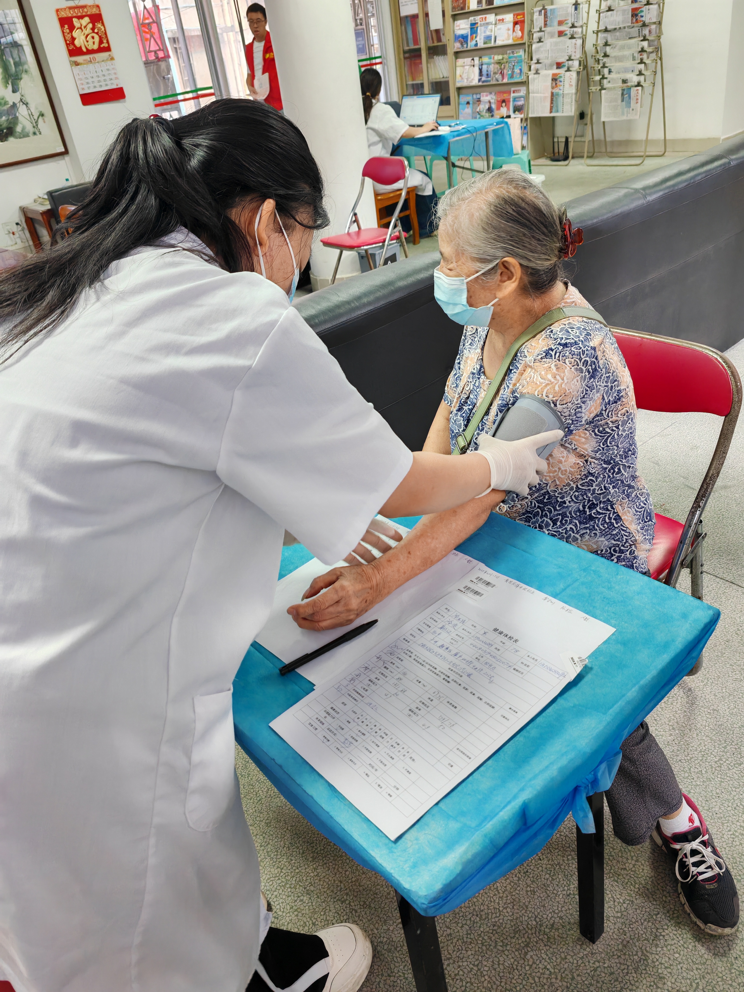 图为长者接受热情周到的健康体检