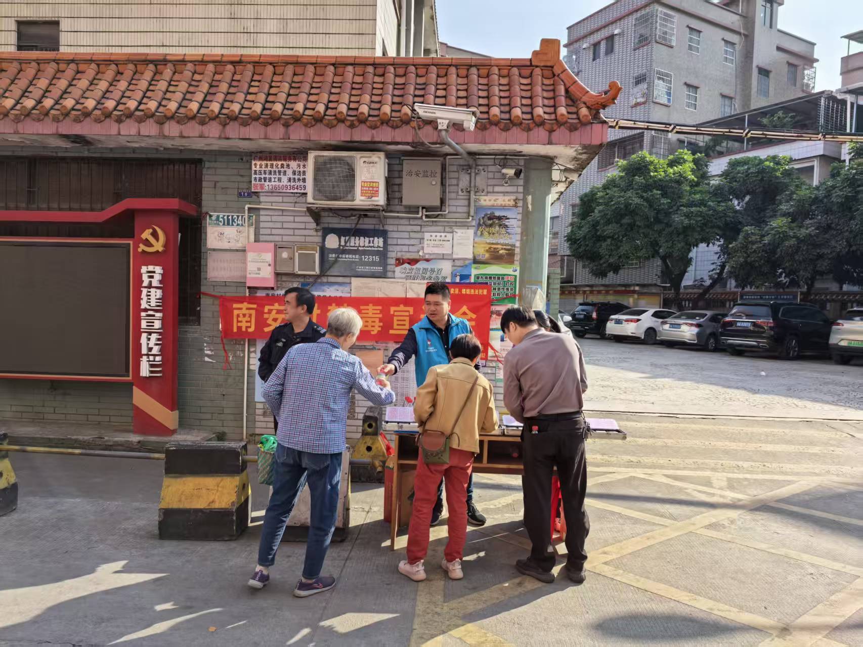 12月9日上午,新塘镇南安村村委门口热闹非凡,第二场禁毒宣传活动在此开展。针对老年人、青少年等易受侵害的重点群体,广爱禁毒社工联合新塘镇平安法治办公室(禁毒组)、村委工作人员,开启了“一对一精准答疑”模式。