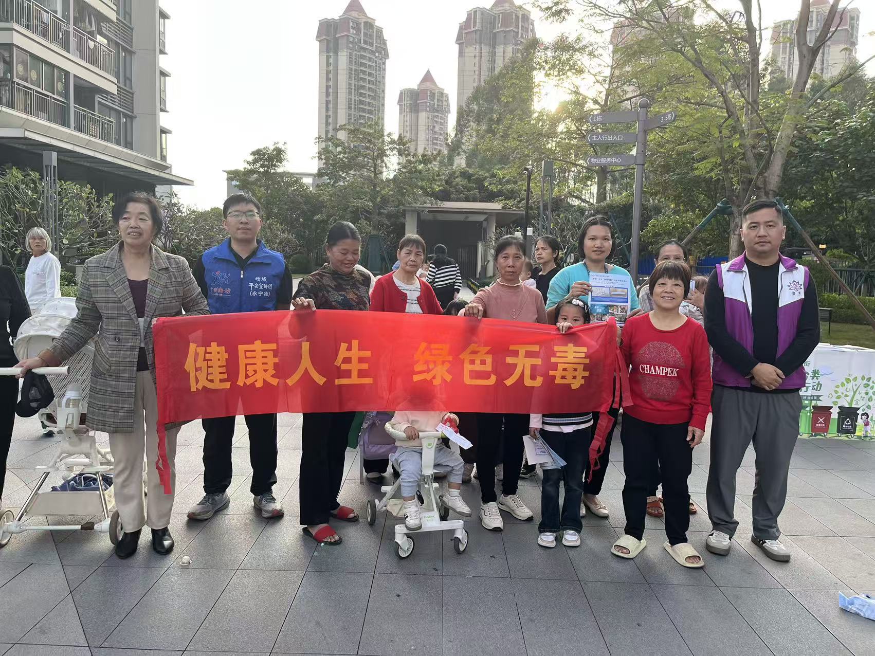 活动尾声,居民们自发聚集,共同举起印有“健康人生 绿色无毒”的红色横幅,一张张笑脸传递着对无毒生活的向往,一声声坚定的表态彰显着拒毒防毒的决心。现场还全方位普及了禁毒法律法规,引导居民主动学习禁毒知识,自觉抵制毒品诱惑。