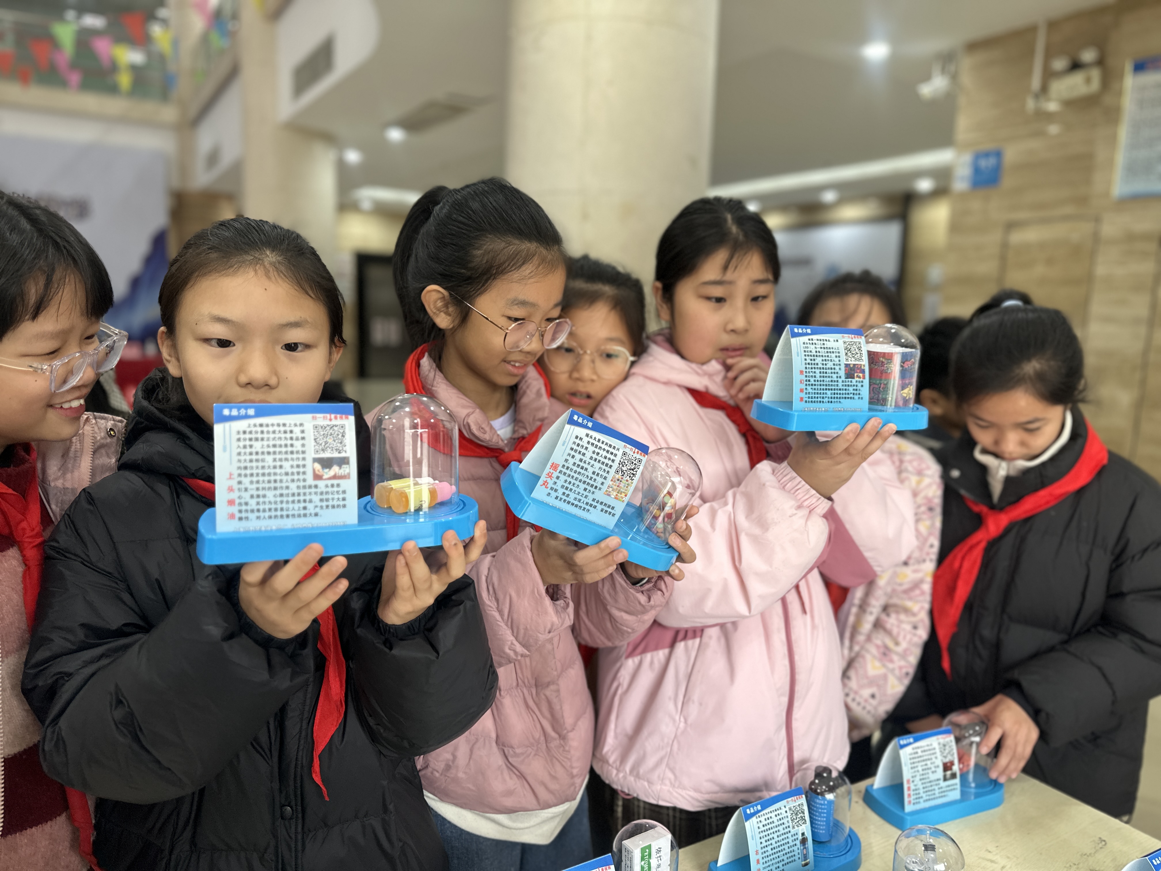 图为学生围观学习毒品知识